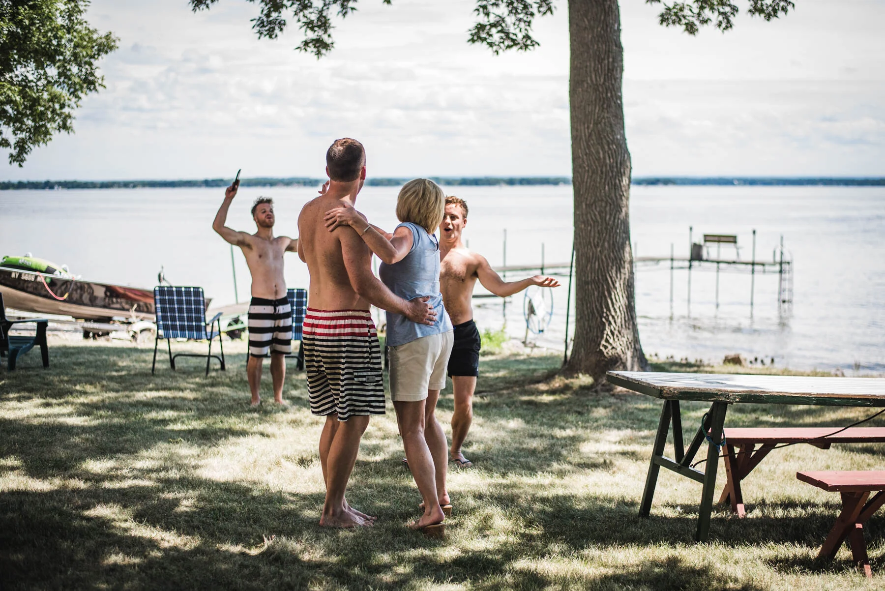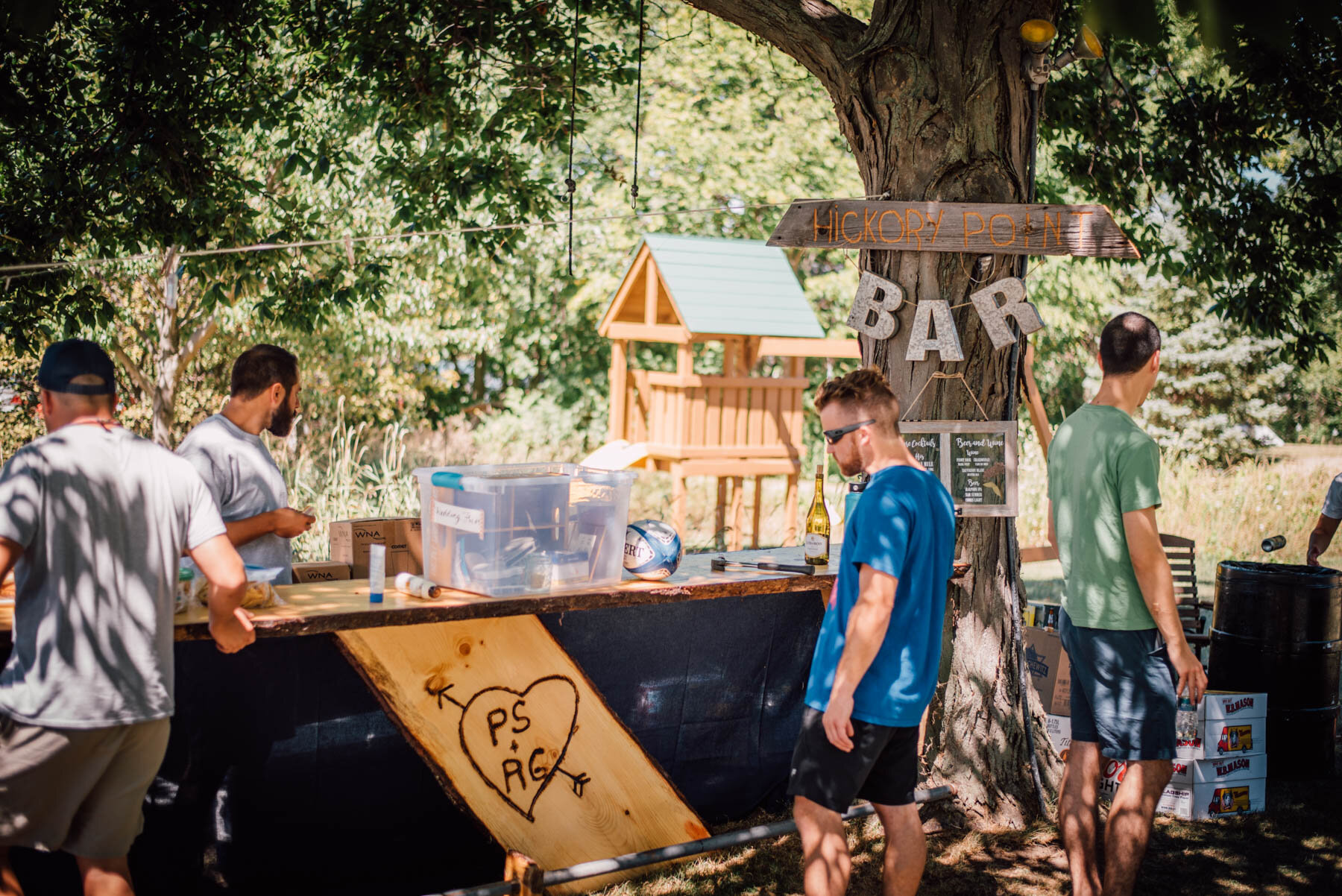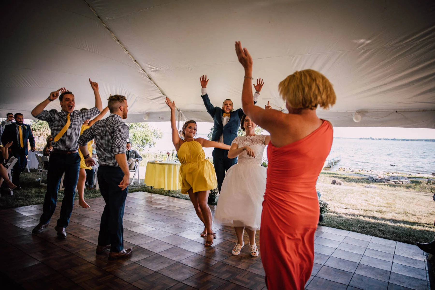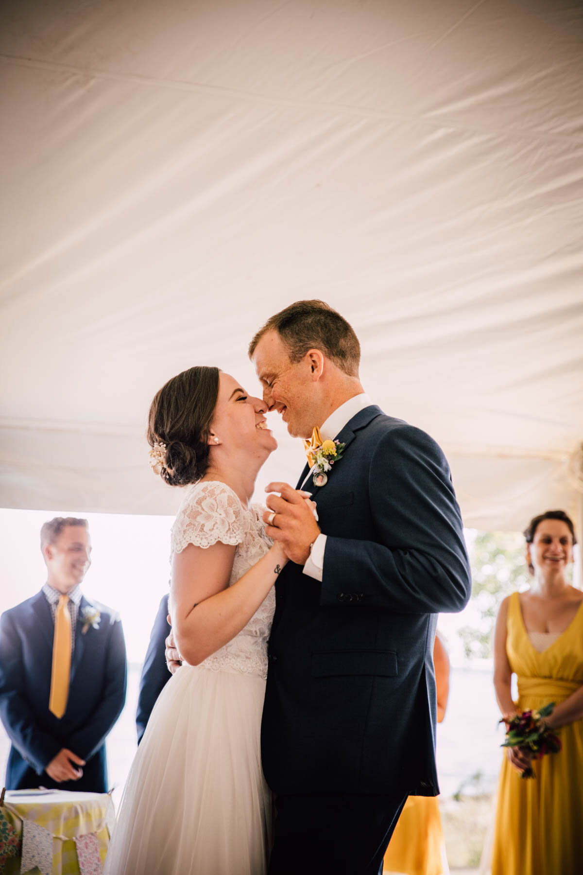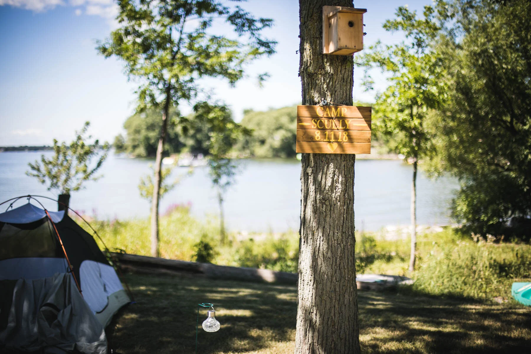 The guys all took a swim before the ceremony, and both the girls and guys danced while getting ready. Rachel's bouquet had a photo charm of her grandpa, and Patrick's boutonniere had a photo on it as well. Each detail was hand-made by Rachel, and with the help of Enchanted Bride, everything came together wonderfully with donuts, a drone, and Camp Scully set up with tents outside of the cottages. It was such a happy day with fun, loving people, and I am so honored that Rachel and Patrick chose me to photograph their day. Special thanks to Emily for helping me!