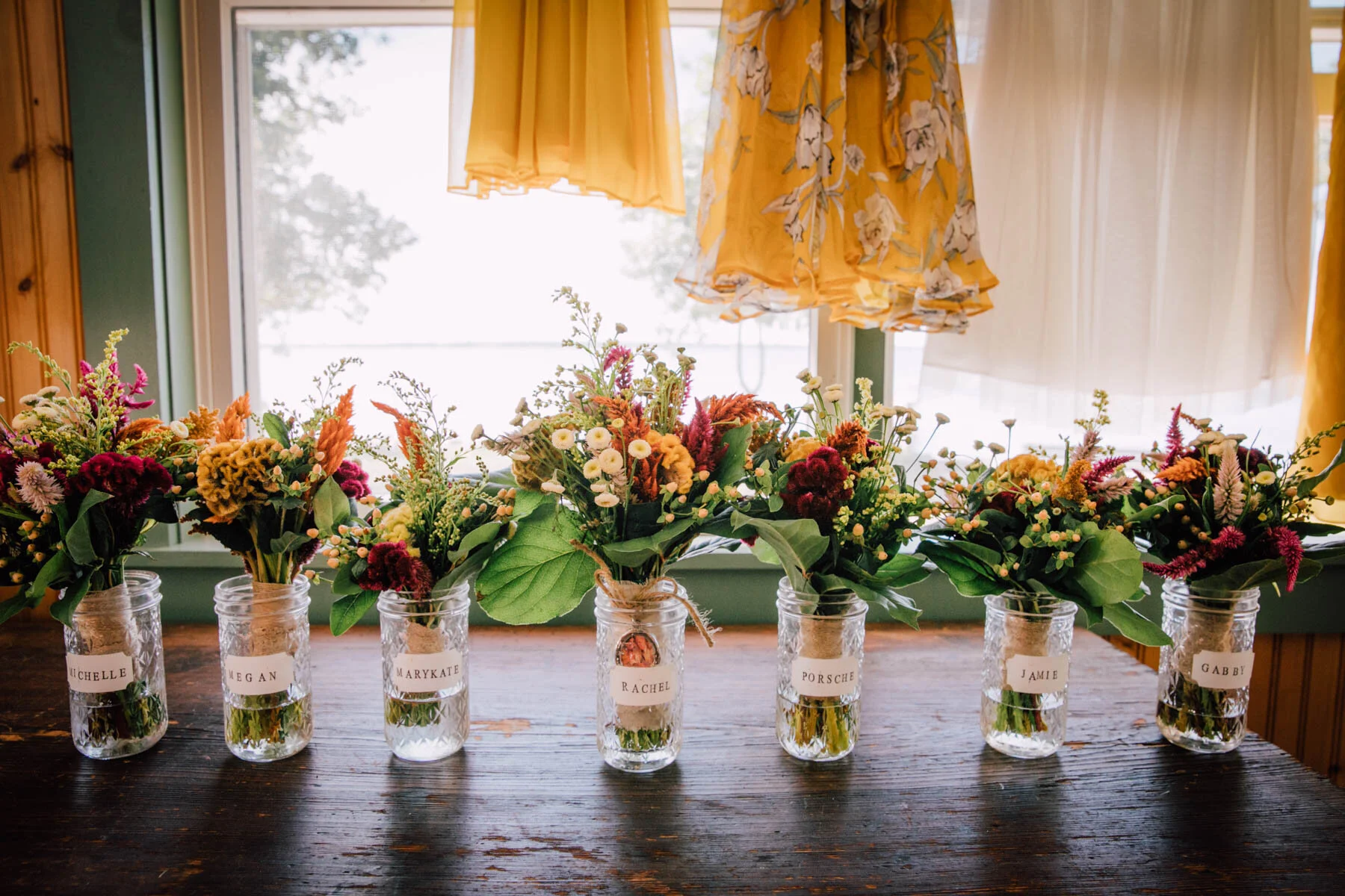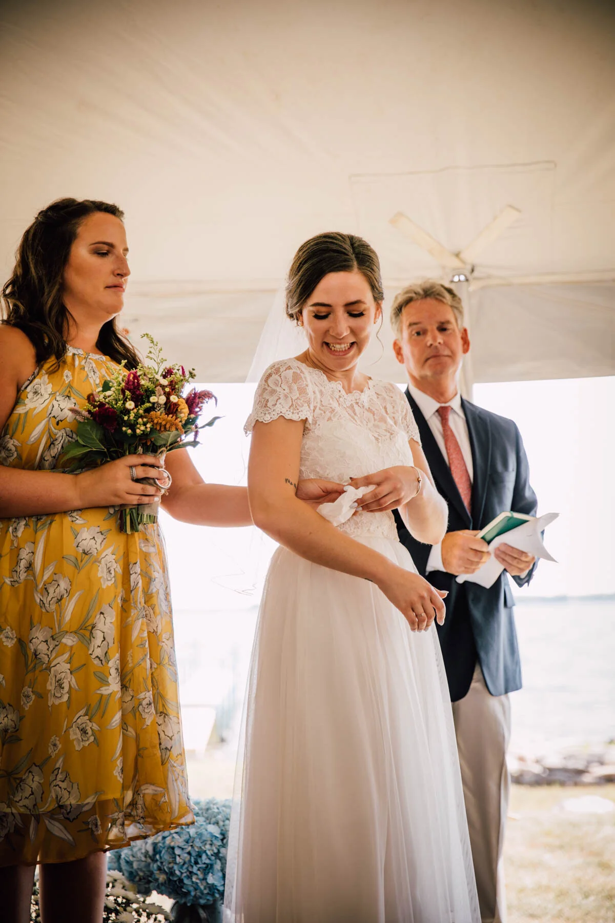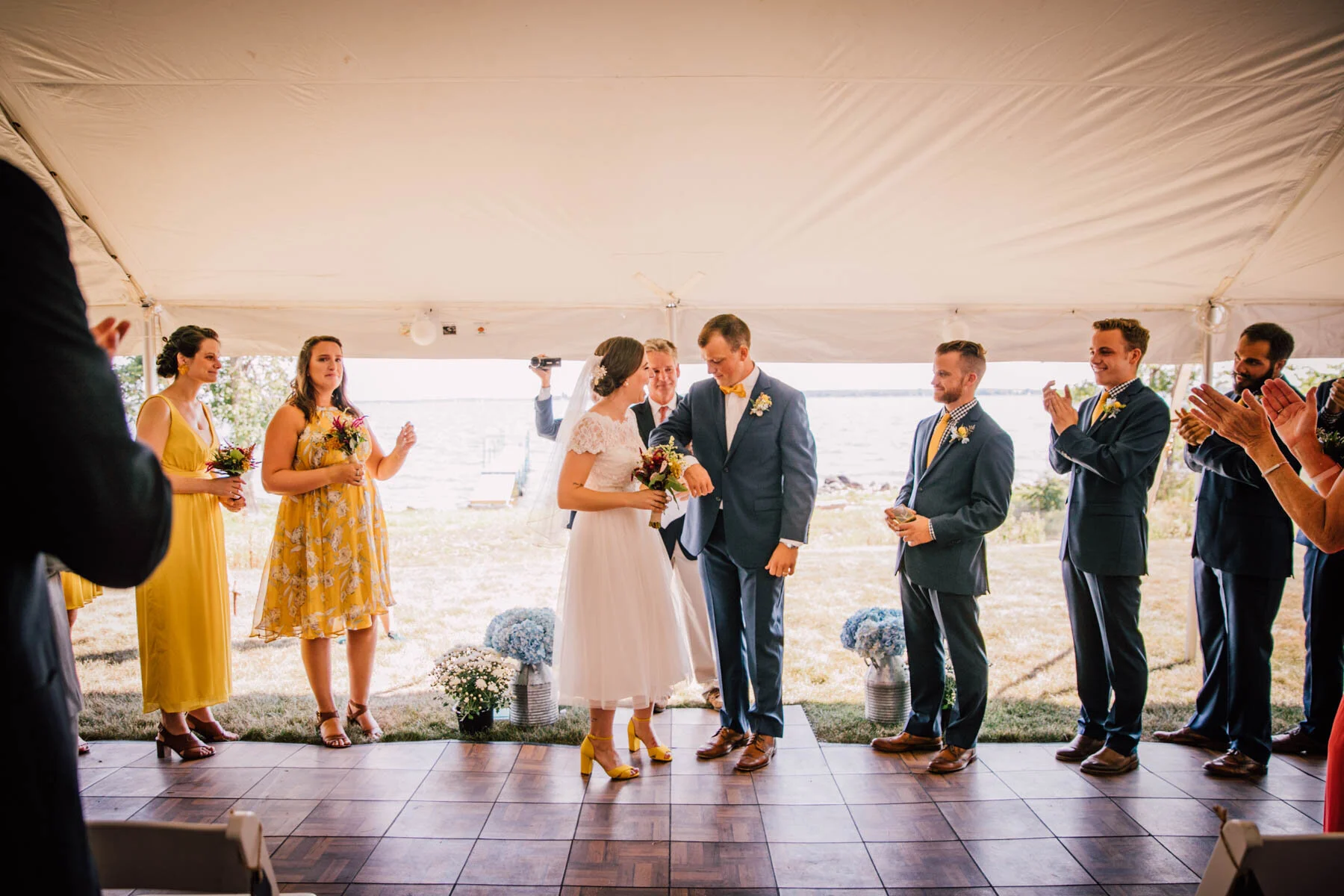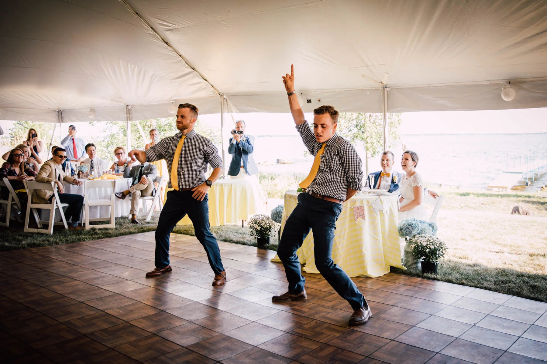 The guys all took a swim before the ceremony, and both the girls and guys danced while getting ready. Rachel's bouquet had a photo charm of her grandpa, and Patrick's boutonniere had a photo on it as well. Each detail was hand-made by Rachel, and with the help of Enchanted Bride, everything came together wonderfully with donuts, a drone, and Camp Scully set up with tents outside of the cottages. It was such a happy day with fun, loving people, and I am so honored that Rachel and Patrick chose me to photograph their day. Special thanks to Emily for helping me!