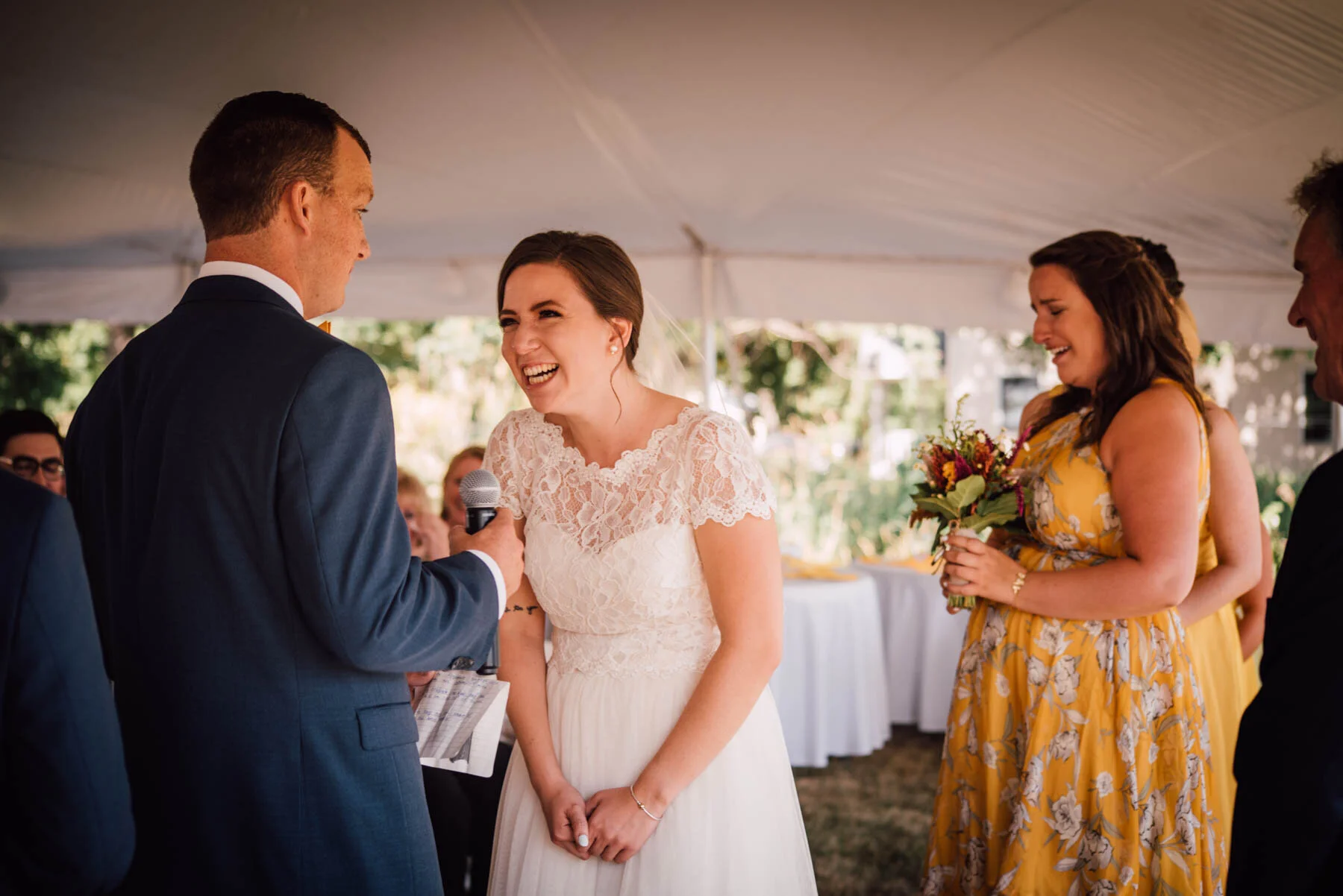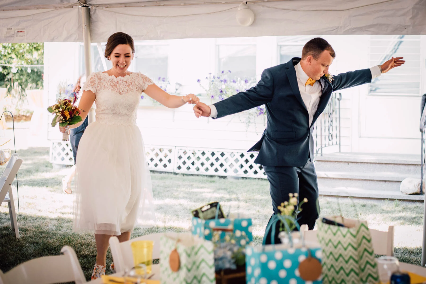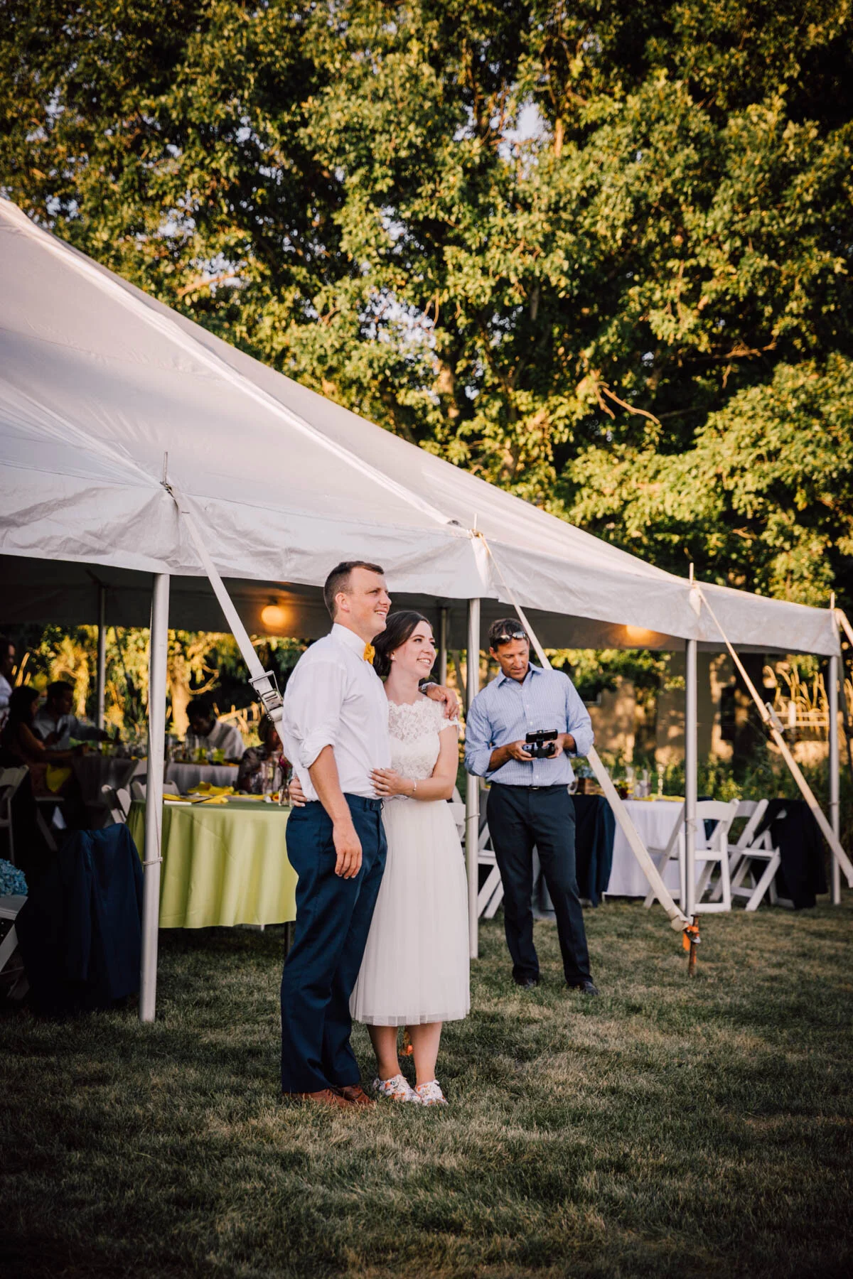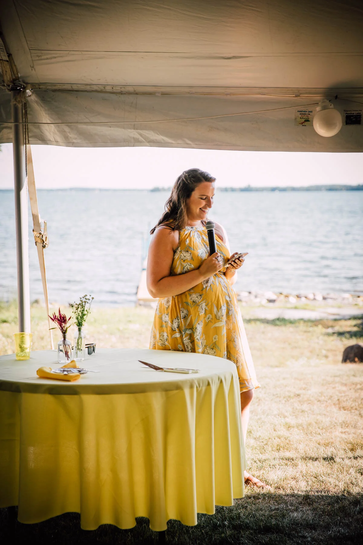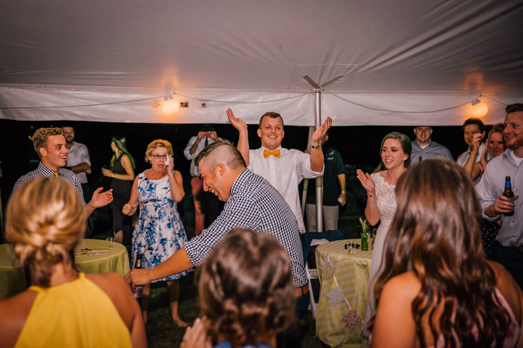 The guys all took a swim before the ceremony, and both the girls and guys danced while getting ready. Rachel's bouquet had a photo charm of her grandpa, and Patrick's boutonniere had a photo on it as well. Each detail was hand-made by Rachel, and with the help of Enchanted Bride, everything came together wonderfully with donuts, a drone, and Camp Scully set up with tents outside of the cottages. It was such a happy day with fun, loving people, and I am so honored that Rachel and Patrick chose me to photograph their day. Special thanks to Emily for helping me!