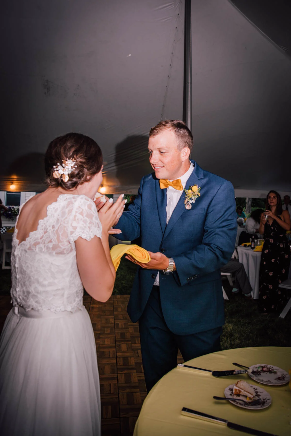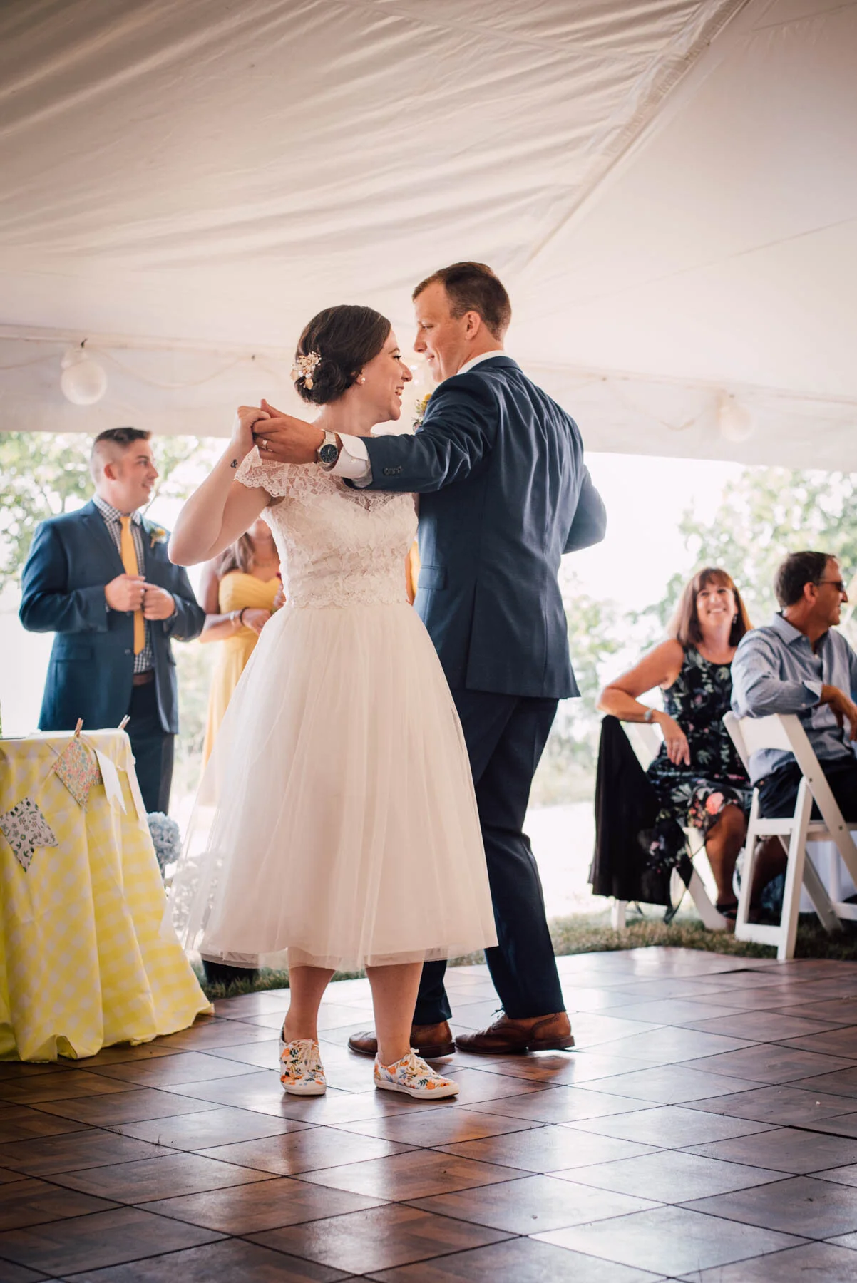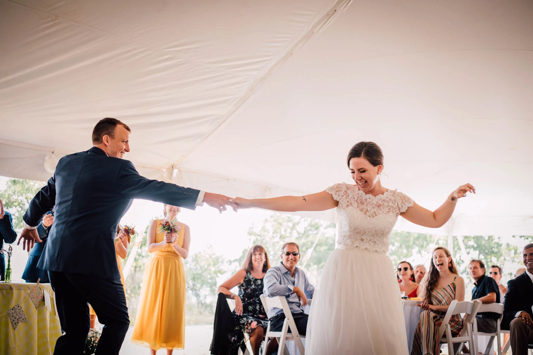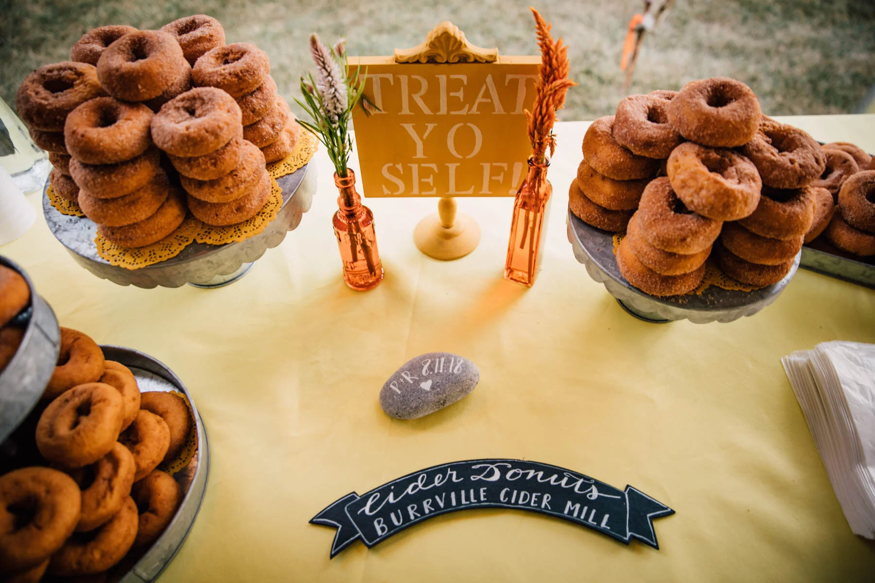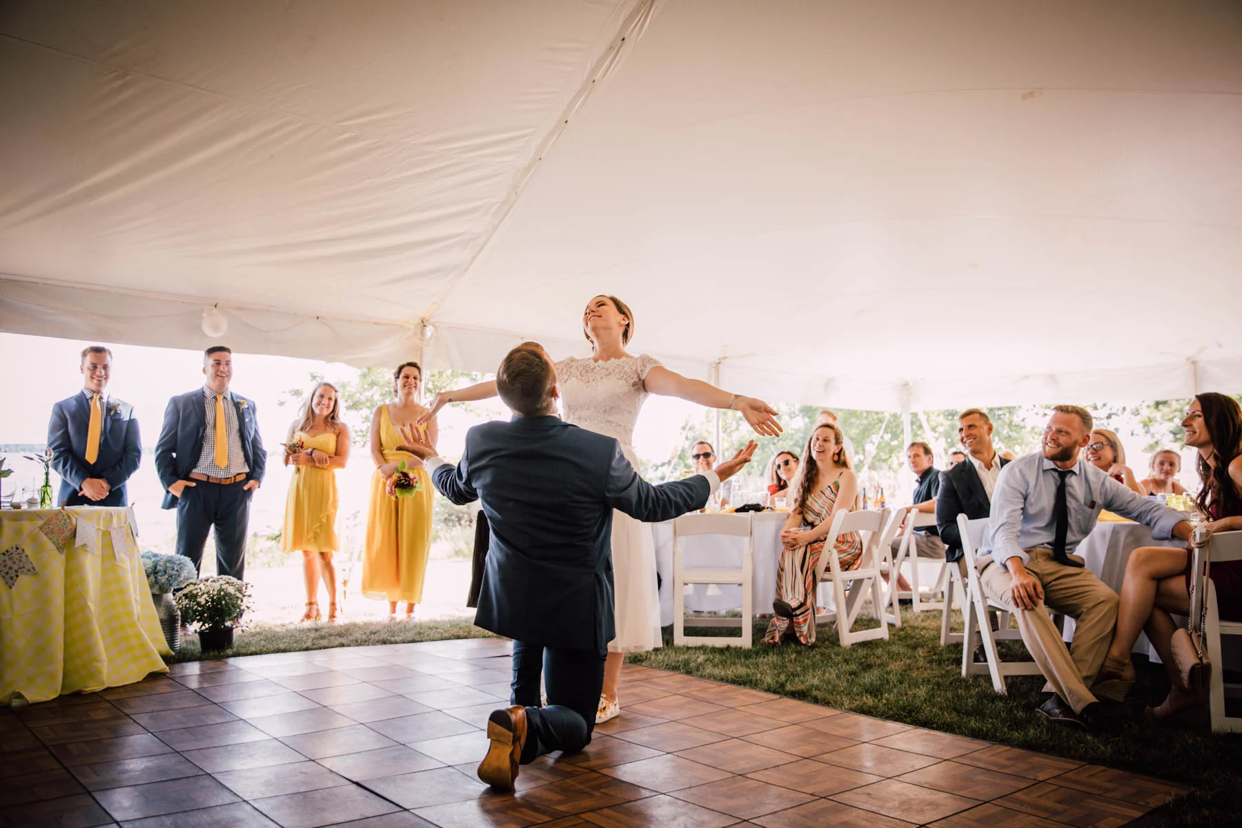 The guys all took a swim before the ceremony, and both the girls and guys danced while getting ready. Rachel's bouquet had a photo charm of her grandpa, and Patrick's boutonniere had a photo on it as well. Each detail was hand-made by Rachel, and with the help of Enchanted Bride, everything came together wonderfully with donuts, a drone, and Camp Scully set up with tents outside of the cottages. It was such a happy day with fun, loving people, and I am so honored that Rachel and Patrick chose me to photograph their day. Special thanks to Emily for helping me!