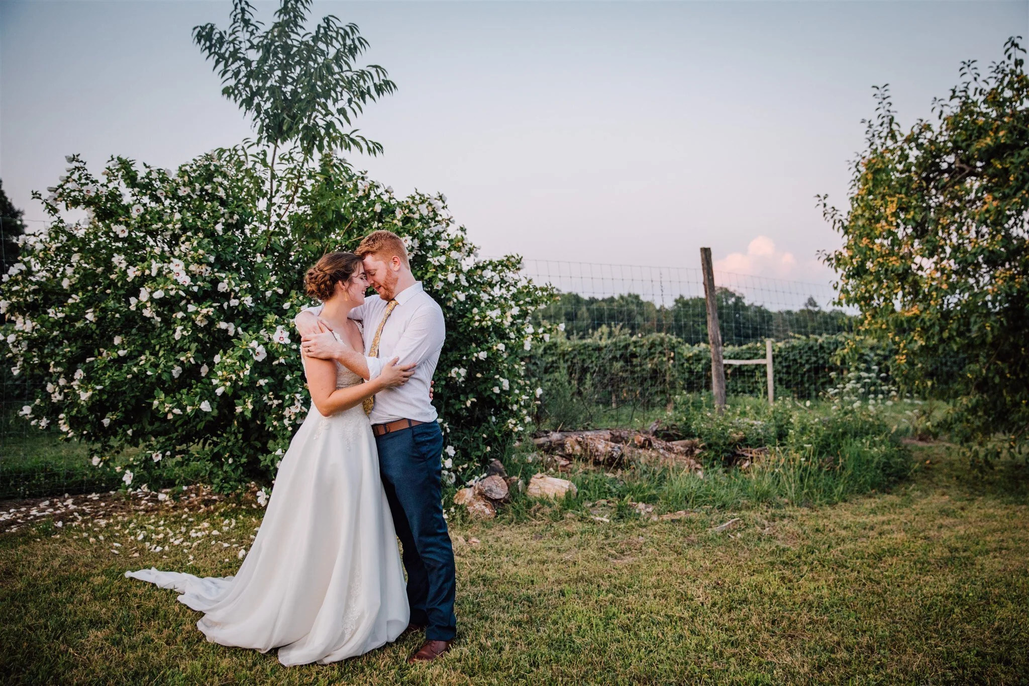 Their July 27th wedding was hot, but filled with love and plenty of hard cider! After their ceremony they had tintype portraits taken by Tom DeLooza, and I was able to get a gif of them spinning in the apple trees. I snuck them away from dancing for twilight photos by the flowering trees, documented Wesley’s end of the night singing, accompanied by his brother on piano, and captured their sparkler exit. Be sure to scroll all the way down to see those special moments!