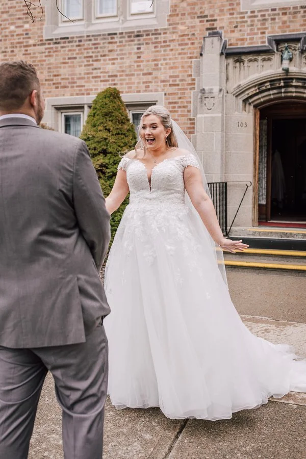 I was so excited to start my wedding season in April with Alaina and Christopher! This super sweet spring wedding took place in Oswego, NY. They had a traditional church wedding ceremony, followed by photos along the shores of Lake Ontario, and a joy-filled reception at Bayshore Grove.