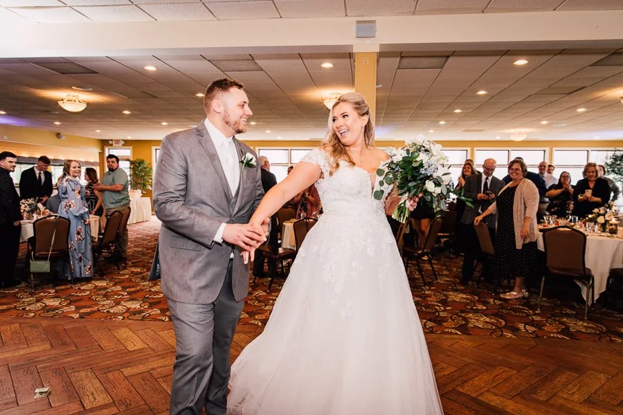 We grabbed a few adorable photos of Christopher with the ring bearer, who was also his nephew, right as the rain started up again. The blissful newlyweds were introduced into their reception and went straight into their first dance as husband and wife. That was followed up by parent dances, speeches from the Best Man and Maid of Honor, dinner, and plenty of dancing. Their group was a little rowdy, which made the reception extra fun. We had a blast with the bouquet and garter toss, and then Alaina, Christopher, and I ducked outside for a few final rainy wedding photos.