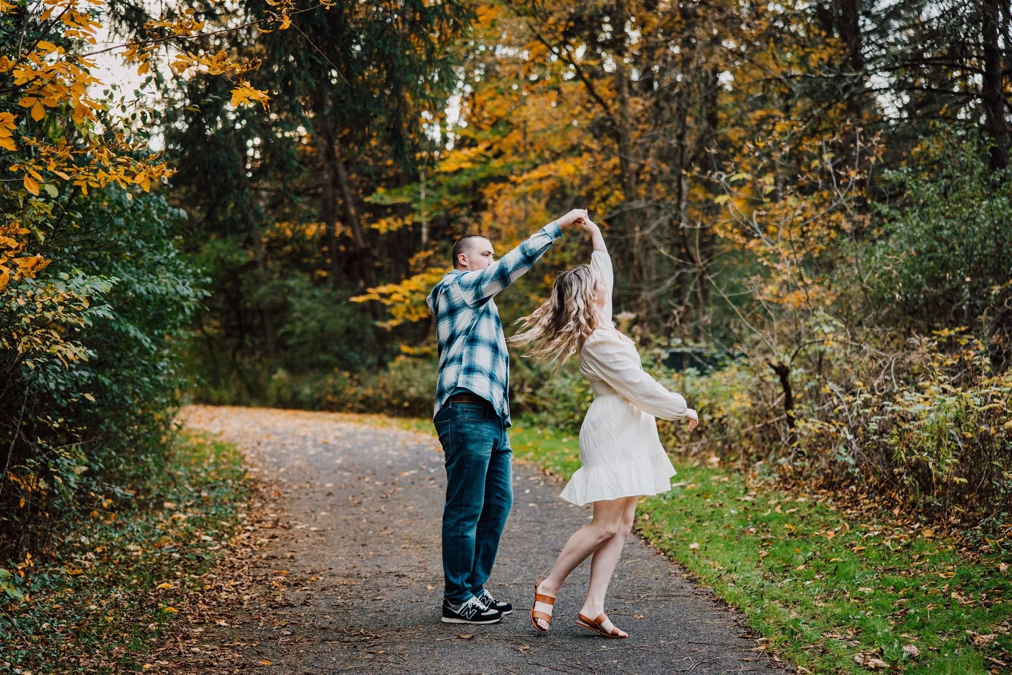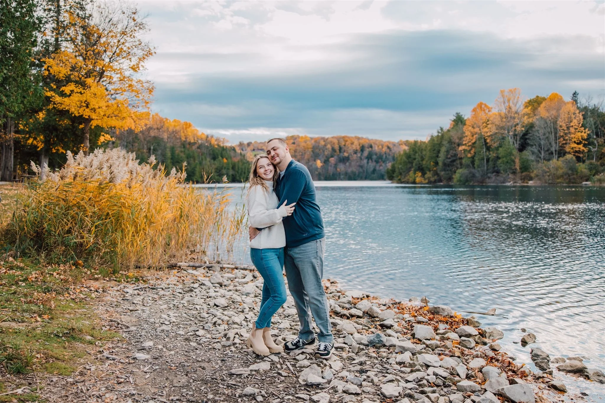 We met on a crisp October day, just as the trees were showing off their peak autumn colors. The golden yellows, fiery oranges, and deep reds created the dreamiest setting as we wandered through the trails, stopping under arching branches and near quiet pockets of the lake. Emily and Brandon were so easygoing and full of joy—my favorite kind of energy to photograph.