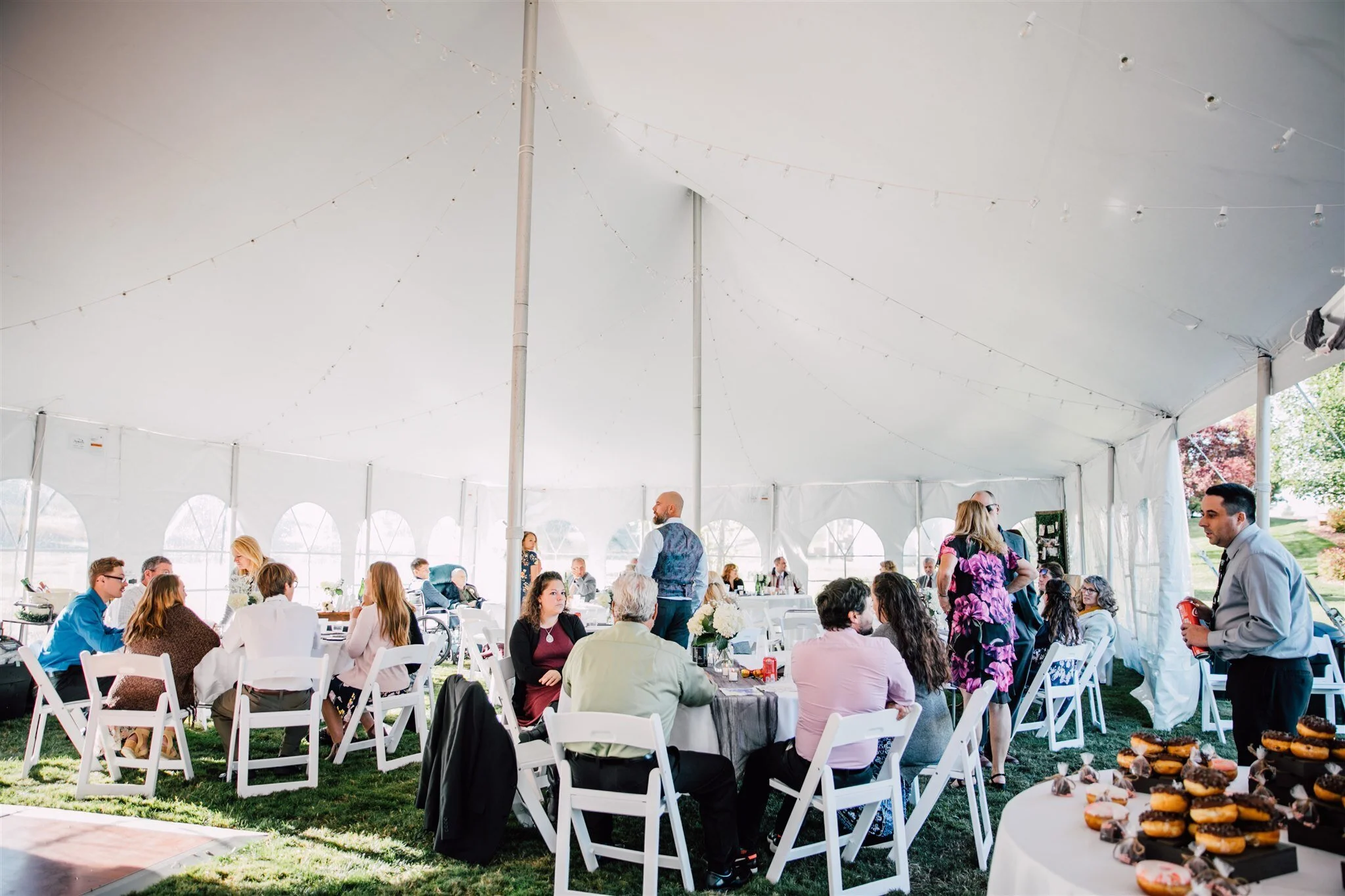 After Bride and Groom photos, we headed back to the house for a few final family portraits before dinner, which Emily and Ben graciously let me partake in. They had an epic donut wall which was a huge hit with the wedding guests. Their reception was the perfect blend of simple yet classic DIY wedding ideas mixed with help from some of the best Finger Lakes region caterers available.