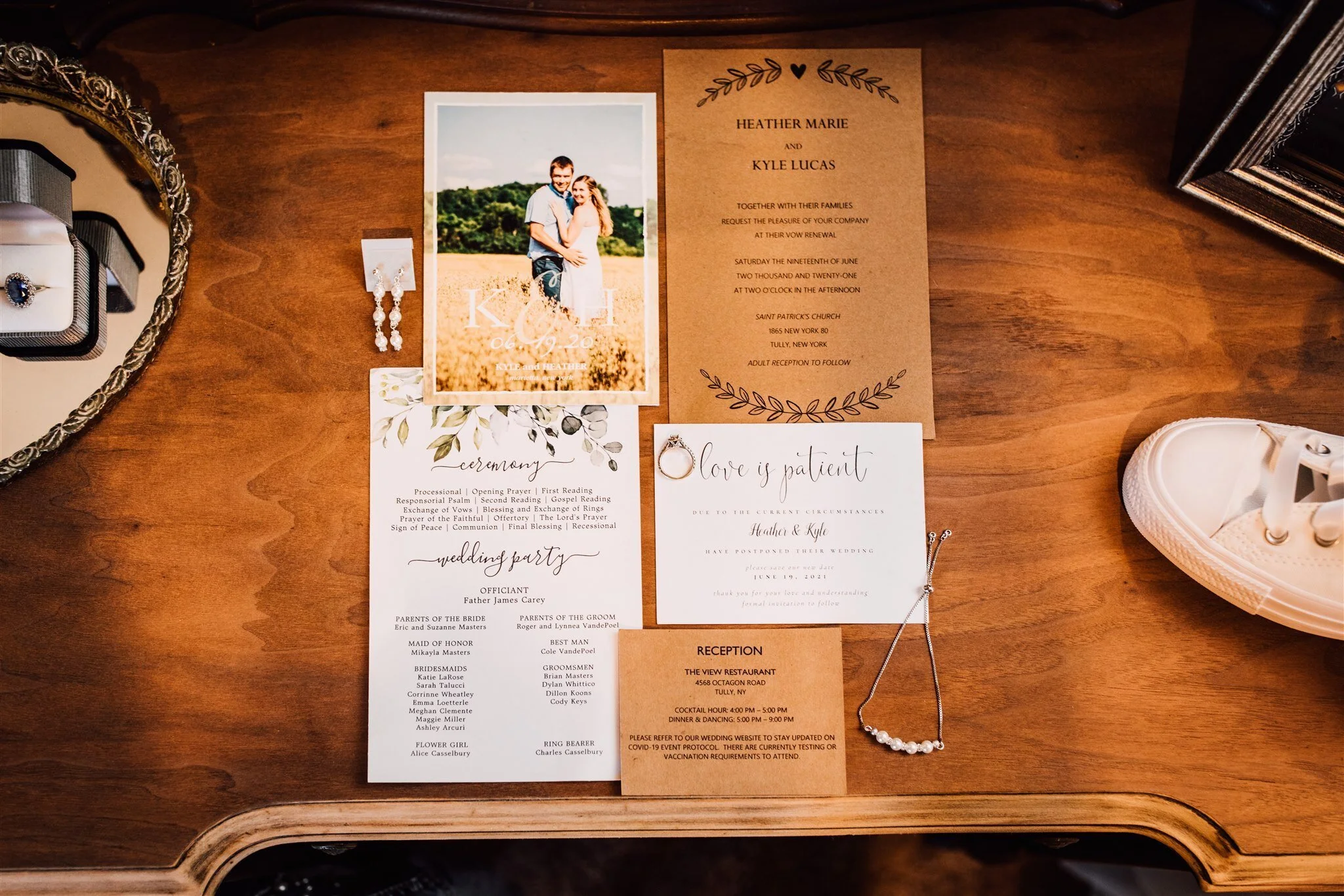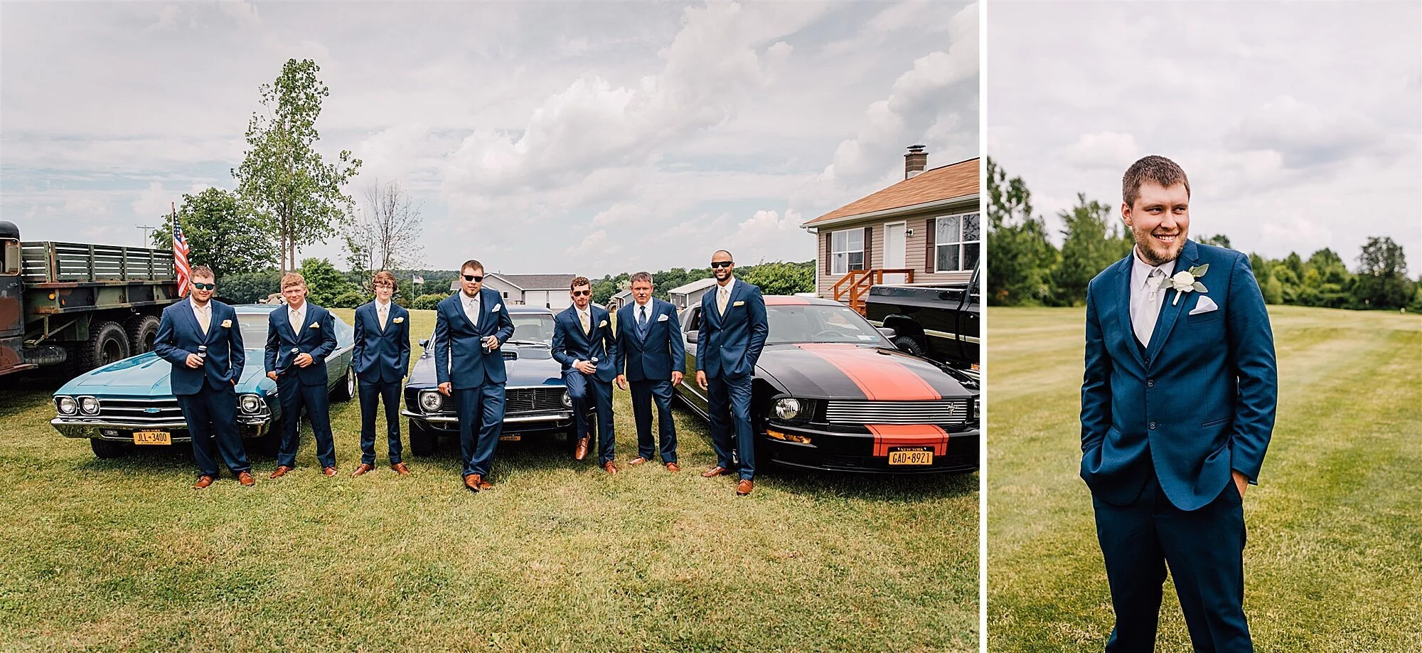 Kyle and his groomsmen got dressed at his house, then drove to the ceremony in an array of unique cars (including an army truck!). The ceremony was held at St. Patrick’s Church in Tully. It was a special location for Heather because numerous family members had wed in the exact same church over the past decades. They partook in a traditional Catholic service and blessing, followed by a receiving line with plenty of hugs from family and friends they hadn’t seen in a while.