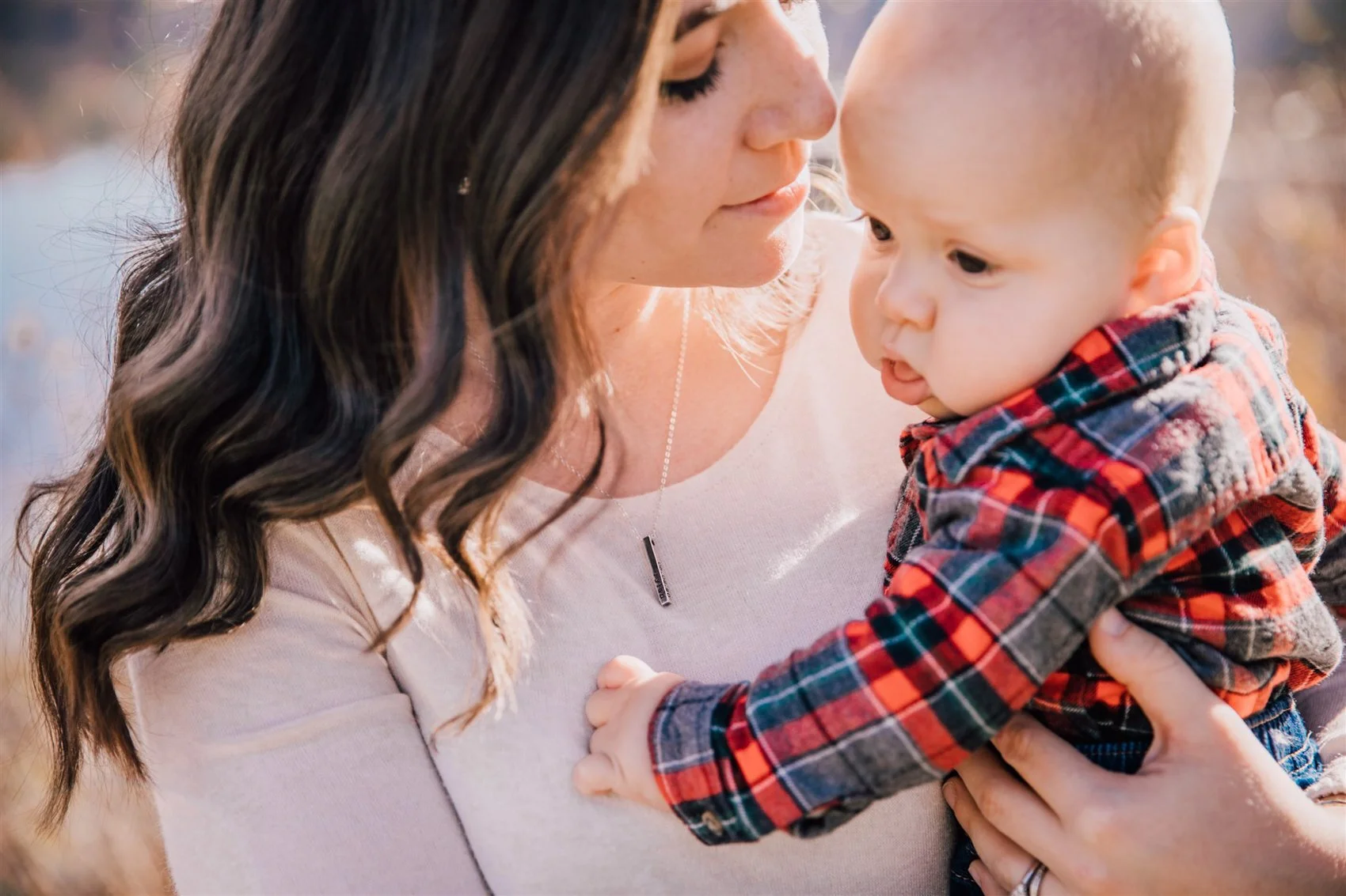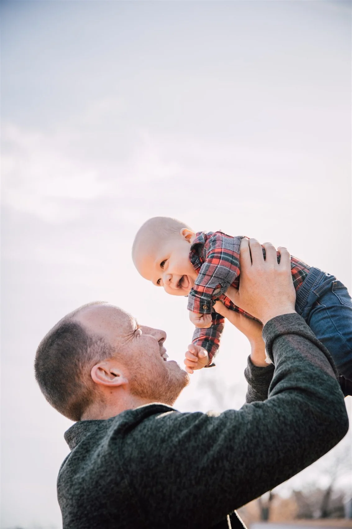 Some of my favorite pictures from their family session were the individual mom and baby photos. Rachel was wearing a necklace with Rylan’s name on it, so it was fun focusing on that for a few shots. The photos of Rachel kissing him on the cheek are perfect, especially with his adorable plaid shirt and her gorgeous dark locks. I can’t forget about photos with Dad as well! Nothing made Rylan laugh quite like goofing around with Patrick. It was so sweet to watch.